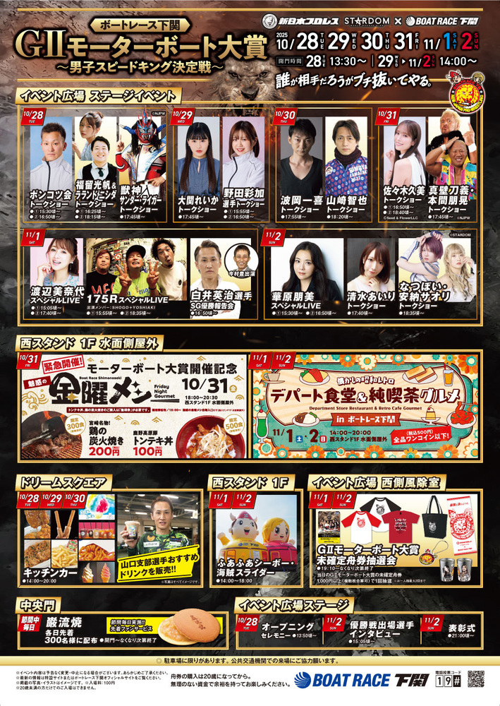 下関市長府松小田東町のボートレース下関で28日~11月2日の6日間、「GⅡモーターボート大賞~男子スピードキング決定戦~」が開催されます。